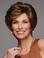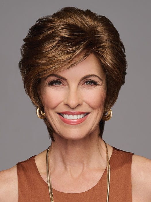 Femme and Flirty from the Gabor Fall Collection is a pixie cut with length in all the right places. The top crown area has a beautiful round-brushed look that gives volume and the all over layers give a soft feminine appearance. Wear the bangs to the side, or utilize the lace front and wear the bangs off the face.