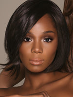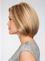High Society by Gabor is a precision crafted, below-the-chin bob wig that includes sides that gently graduate up to a collar length nape including a hand knotted monofilament part for varied parting options and a sheer lace front for a life-like, off-the-face styling.