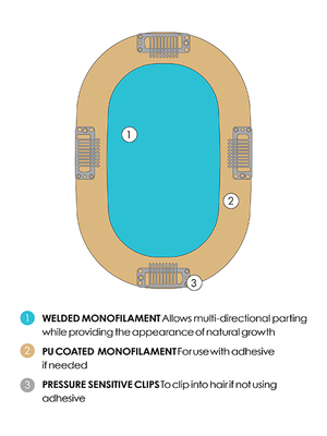 • Welded Monofilament Base - The base is hand-knotted to create the appearance of natural hair growth, which allows for parting versatility, and is sheer to blend with all skin tones.