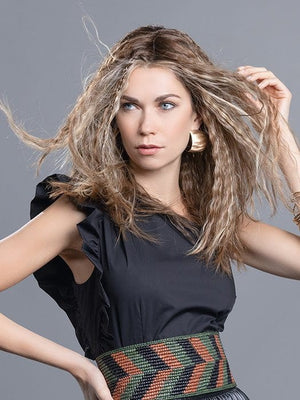 DIVA by Ellen Wille in TOBACCO-ROOTED 12.26.27 | Lightest Brown, Light Golden Blonde, and Dark Strawberry Blonde blend with Dark Shaded Roots