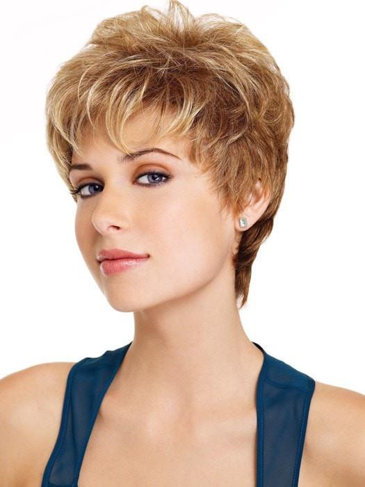 Aspire-petite from the Gabor wig Collection, is a gorgeous short feminine pixie hairstyle. With all over layers and loose curls that give the perfect amount of volume on top. The color tones for Aspire graduate from light down to a darker shade at the nap for a gorgeous natural look. A true ready-to -wear style and is easy to maintain.