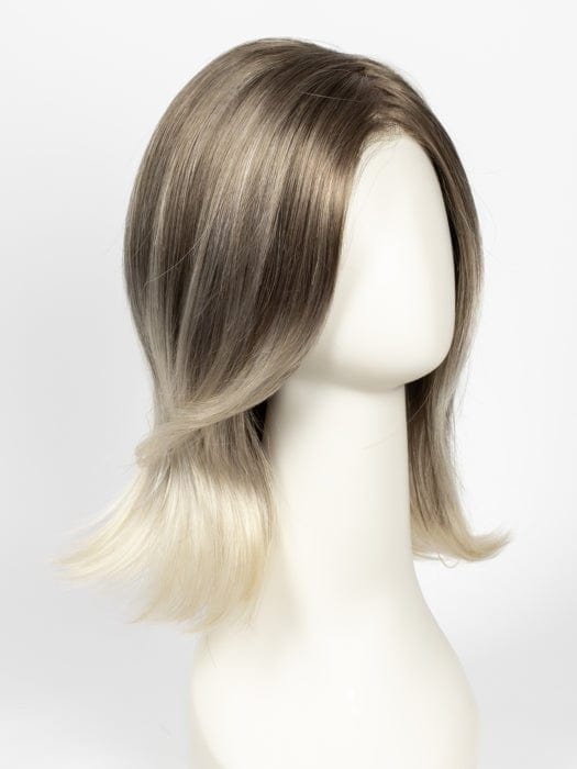 Model is wearing ELLE by JON RENAU in color 101/88/27S8 CATALINA BLONDE | Pale blonde with Pure White Natural Violet halo highlights, shaded medium brown