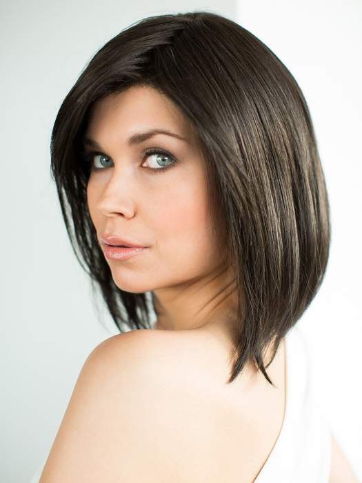 The Icone Wig by Ellen Wille is the perfectly tailored long bob style. This iconic cut falls right above the shoulders and has fringe that side sweeps with ease at cheek bone level. The transitional layers are placed so that you may comb it under or flipped out. The impeccable ear to ear extended lace front offers versatile styling and the most seamless, natural appearance. The premium synthetic fiber used to create the Ellen Wille Icone mimics the look, feel and movement of biological hair.