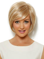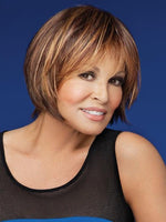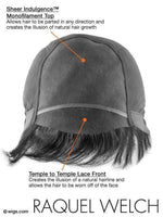 The Muse by Raquel Welch is 100% hand-tied chin-length bob. With a slight undercut for an elegant silhouette. The top is monofilament which is hand knotted and gives the illusion of natural hair growth. Along with soft feminine bangs this style is easy to care for and designed for superior comfort for all day wear.