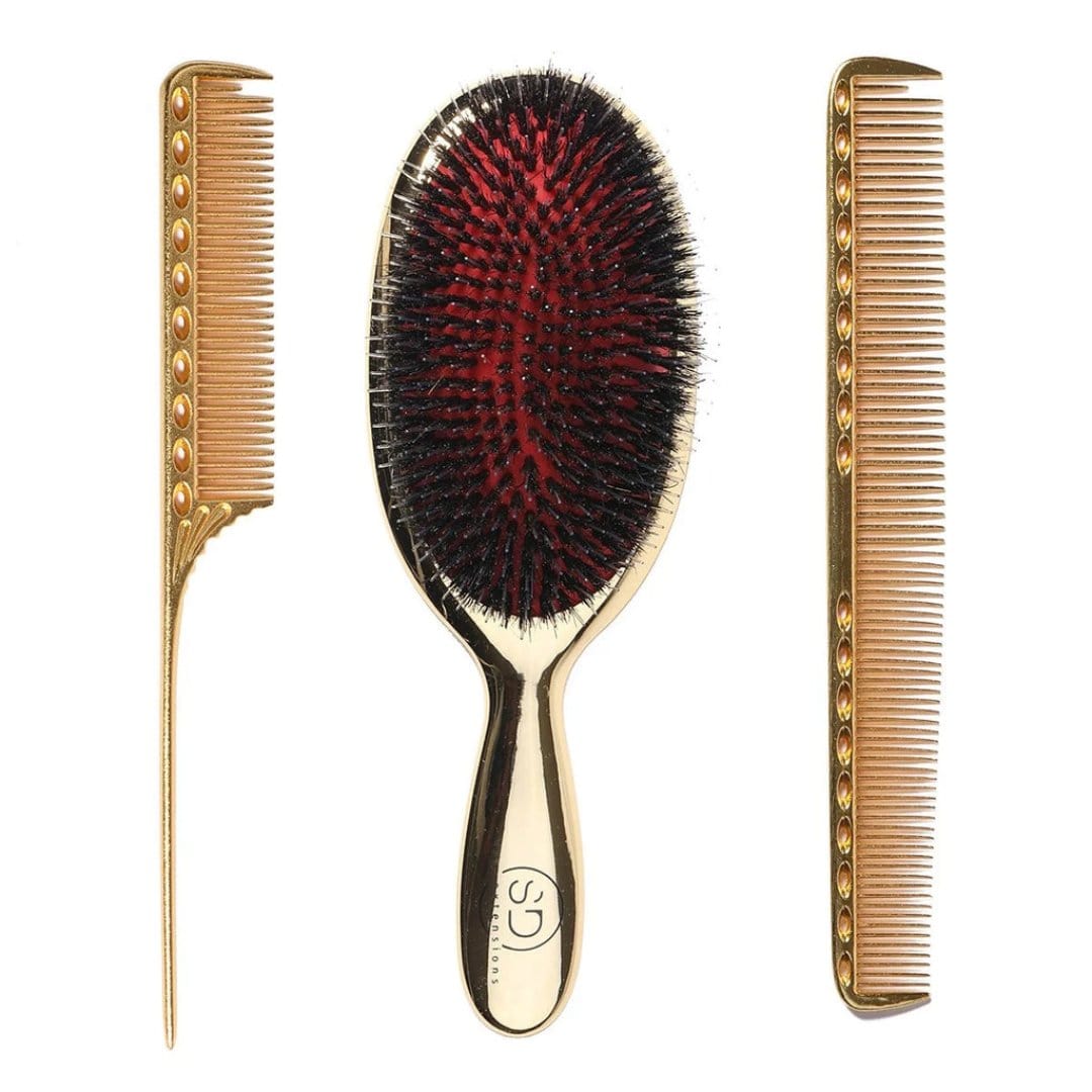 This Gorgeous Brush and comb kit adds a touch of class every time you tend to your locks!. 3-piece set in either Gold or Silver.