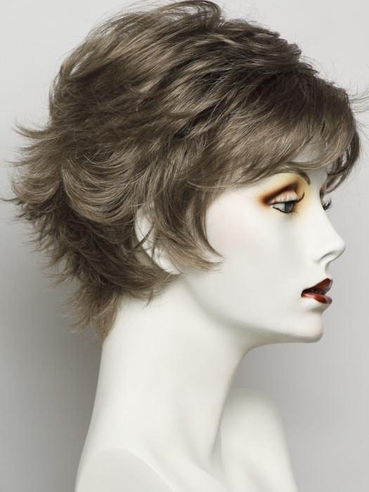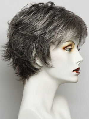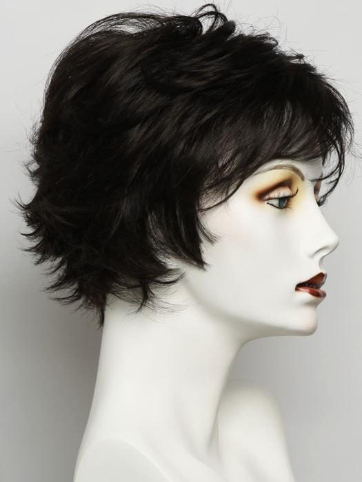 Voltage, a personal favorite of Raquel Welch is now available in Voltage Petite! This short wig is bold, textured, and features all-over layers that are feathered to perfection. The wispy bang and flared neckline make it gorgeous at every angle. This shake and go" style can be styled soft and layered out of the box, or messy and modern using the Shaping Creme by BeautiMark. The Vibralite synthetic fiber looks and feels like human hair and is available in a variety of salon inspired hues, also available in gray colors, beautiful shades of grey.